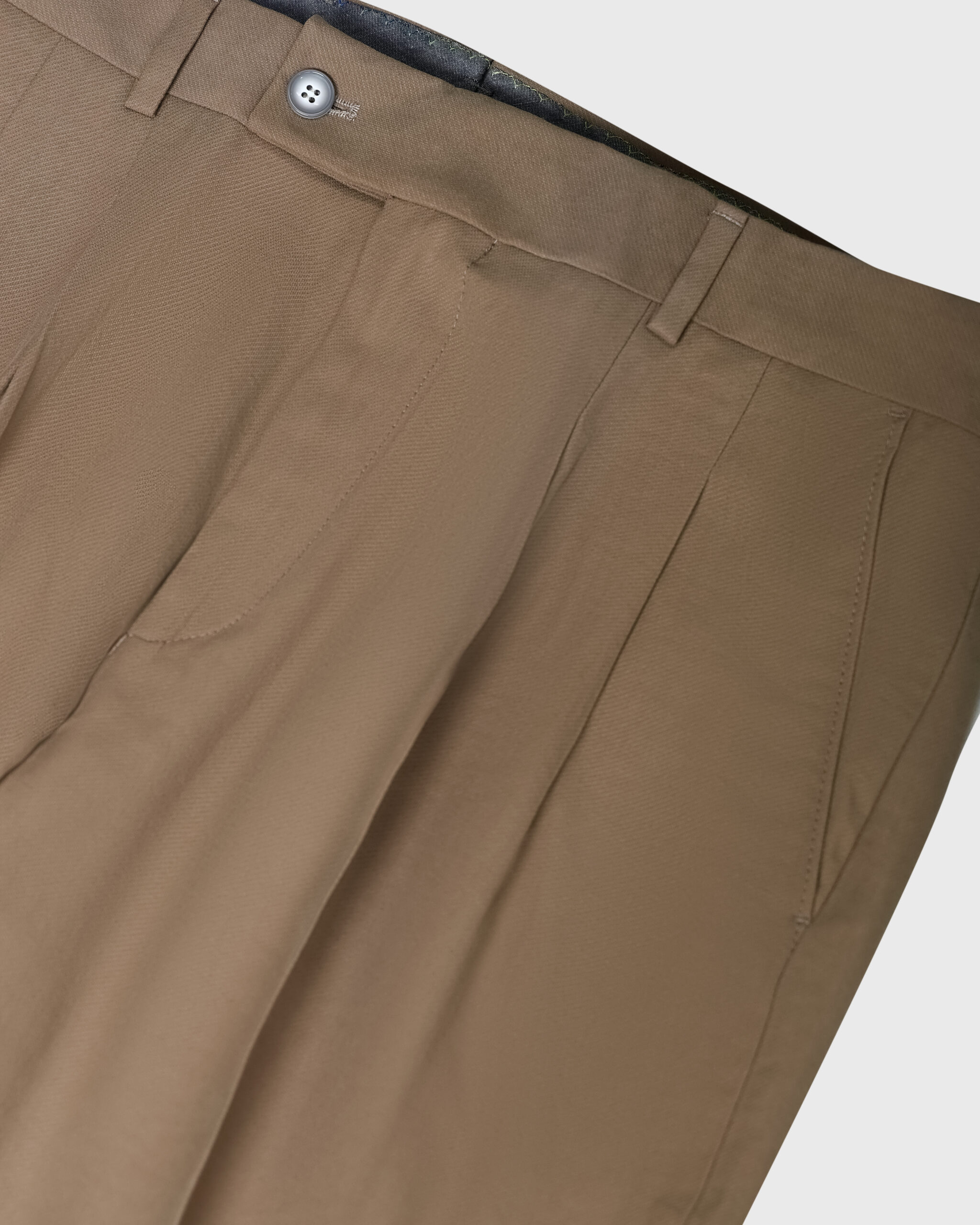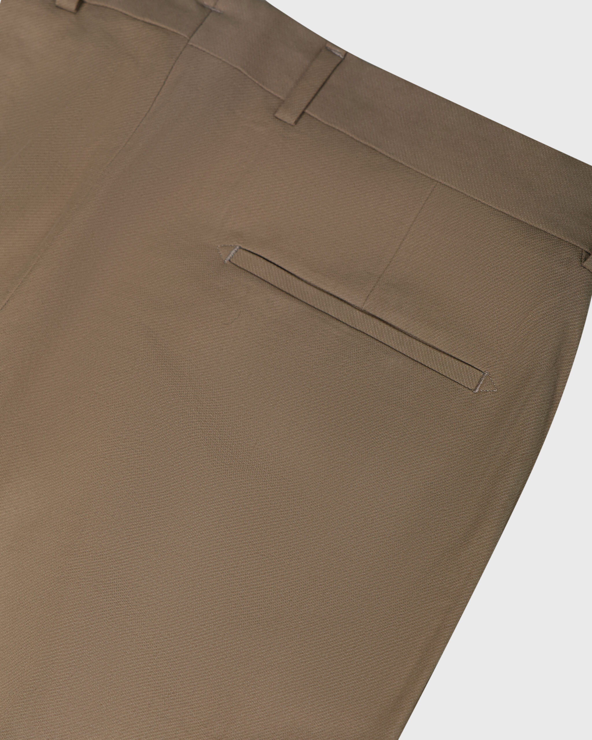پاچههای شلوار را کمی از هم باز کنید. متر را وسط لبهی جلویی کمر قرار داده و تا قسمت فاق اندازه بگیرید. با این روش اندازهی فاق را به دست میآورید.